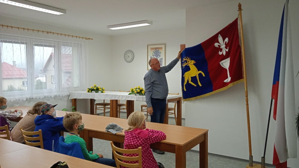 V úterý 29.9. jsme se vypravili do centra obce. Naším cílem byl obecní úřad, na kterém nás přivítal pan starosta Ing. Vladimír Petružela. V zasedací místnosti všechny seznámil s historií i současností naší obce. Vyprávěl také o své práci i o práci zaměstnanců obecního úřadu. Během celé návštěvy se děti mohly ptát na to, co je zajímá. Pozorné posluchače pan starosta sladce odměnil bonbónem. Ze zasedací místnosti jsme se přesunuli do obřadní síně, která se všem velmi líbila. Návštěva nás natolik zaujala, že se nám ani nechtělo zpět do školy.