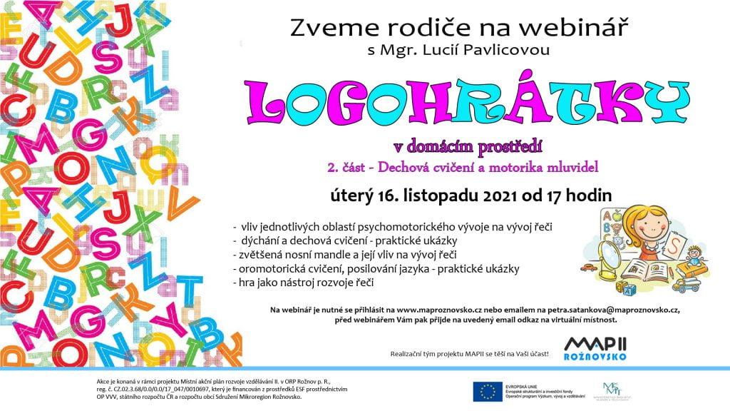 Na webinář je nutné se přihlásit na stránkách www.maproznovsko.cz