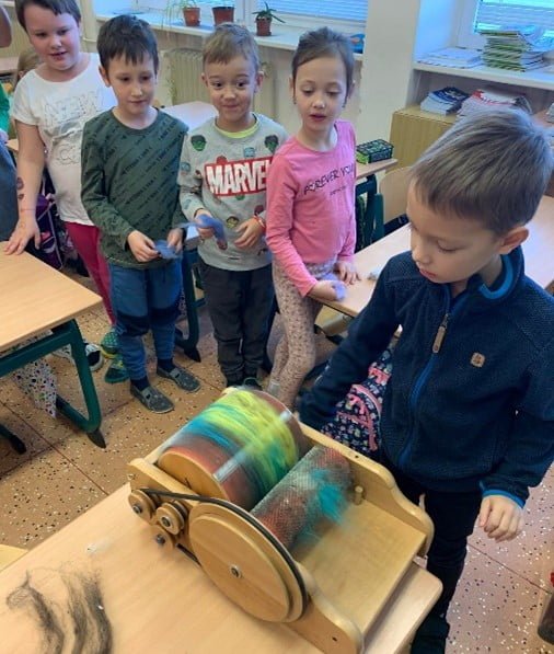 Víte, jak se zpracovává ovčí vlna? My jsme to také nevěděli, a proto nás přišla 22. 11. do první třídy navštívit přadlena paní Viera Kranz. Ta se zabývá ručním zpracováním ovčí vlny. Hodně nám o ovečkách a ovčí vlně pověděla. A nejen to. Mohli jsme si vše také vyzkoušet. Stříhali jsme vlnu, ručně česali i spřádali na kolovrátku. Všichni si pak vyrobili malé andělíčky, které jsme vystavili na našem Vánočním jarmarku. Děkujeme za krásnou tvořivou dílnu a už se těšíme na další setkání s touto přadlenou.
