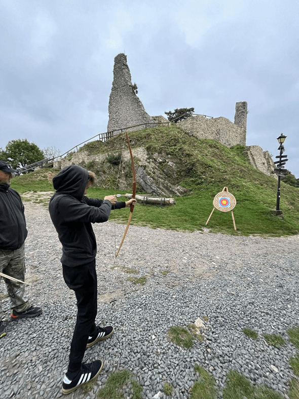V přestávkách bez deště jsme si užili střelbu z luku i prohlídku areálu s poutavým vyprávěním pana kastelána. Konečně jsme se také dočkali vytouženého opékání špekáčků, jelikož nám už pořádně vyhládlo. Poté následovalo ubytování ve věži s doslovným rčením: Jak si kdo ustele, tak si také lehne. Ráno nás čekala příjemná snídaně s čerstvými koblihami a horkým čajem.