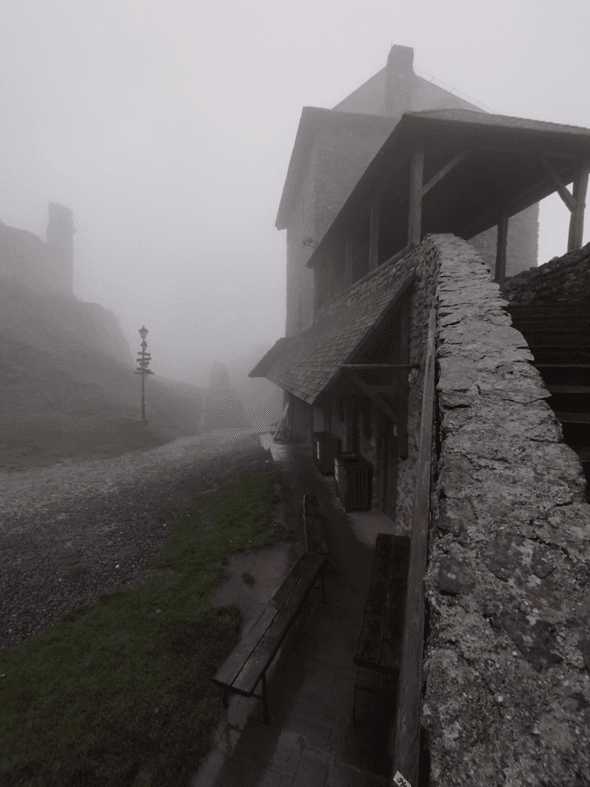 V úterý 23.9. odpoledne jsme se vydali na společné putování linkovými autobusy i pěšky, s naloženými ruksaky na zádech. Kdepak asi složíme hlavu? Co takhle na zřícenině hradu Starý Jičín? Děti s nadšením vyrazily do výšin kopce tyčícího se nad obcí. Cesta končila v mlze, ve které se objevovalo torzo hradeb. Pouze v okýnku věže svítilo malé světýlko, byli jsme na místě. Čekal nás nevšední večer s kouzelnou atmosférou starého hradu, kterou podkreslovalo deštivé počasí doprovázené silným větrem a valícími se oblaky kolem nás.