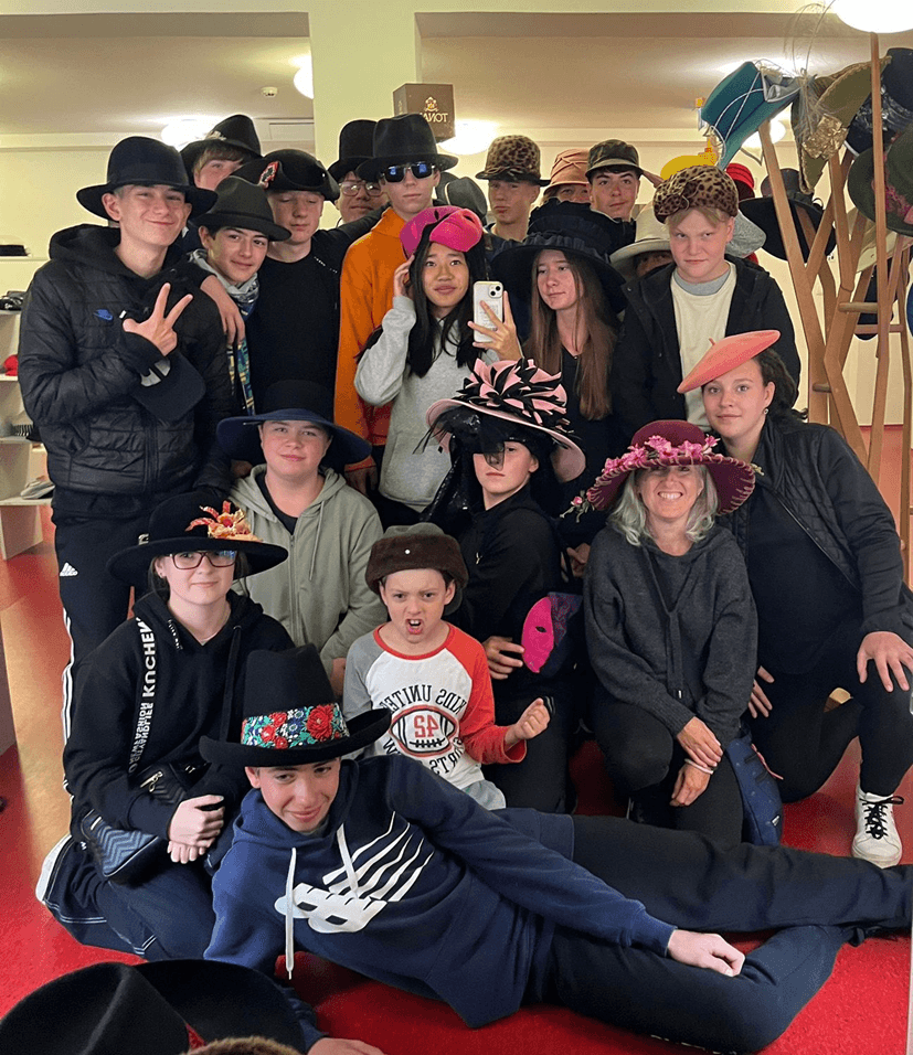 Naše cesta pokračovala o kousek dál do Nového Jičína, kde jsme si prohlédli malebné renesanční náměstí, stihli nakoupit suvenýry i smlsnout dobroty. Dopoledne následovala návštěva Muzea klobouků. Děti prohlásily: „To bylo taky super!“ Komu by se nelíbilo vyzkoušet si 400 různých klobouků:-) Ale nejprve nám byla představena kloboučnická tradice od 16.stol. včetně jednotlivých kroků výroby. V tamním ateliéru jsme se zúčastnili workshopu na zdobení malých kloboučků zvané Šišáčky. Děti se ponořily do vlastní tvorby z přichystaných materiálů a vytvořily svá originální díla.