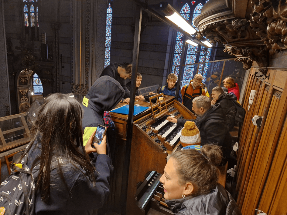 8. třída se vydala ve čtvrtek 4.12.2025 na návštěvu Olomouce, kterou jsme započali v půjčovně kostýmů, což byla součást našich velkých příprav Zámeckého dne. Pokračovali jsme dále, prošli jsme si kouzelná zákoutí historického centra a vánoční atmosféru zažili na jarmarku na Horním náměstí. Následně jsme se vydali do katedrály sv. Václava, kde na nás čekala poutavá prezentace varhan. Pan varhaník nám předvedl a vysvětlil, jak tento hudební nástroj funguje a poutavě nám přiblížil historii existence varhan. Naší poslední zastávkou byla Pevnost poznání – interaktivní muzeum vědy. V expozicích se žáci blíže seznámili s podstatou světelného záření, lidským organismem, historií pevnosti od 18. stol., vodním světem a jeho živočichy.