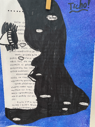 Jednou z aktivit byla Blackout poezie. Žáci dostanou stránku s běžným textem (například z novin nebo knihy). Pomocí fixů nebo výtvarných prvků začerní většinu slov, ponechaná slova pak vytvoří vlastní novou báseň. Výsledkem byly originální, často velmi překvapivé básně doplněné výtvarným zpracováním.